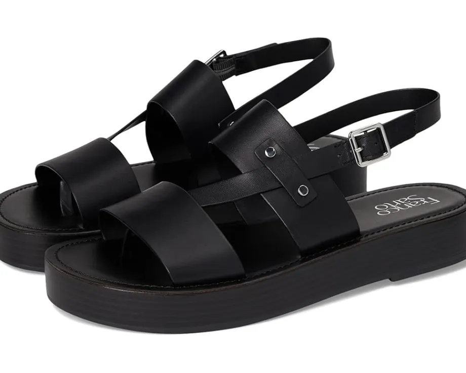 - An eye-catching silhouette and haute hardware detailing combine to create the Franco Sarto® Genova sandals. These bold platform sandals are made of a leather insole and polyurethane lining. The leather upper features an ankle strap with adjustable buckle closure. Easy to slip on and off, these leather sandals are perfect for your outdoor rides and casual outings.