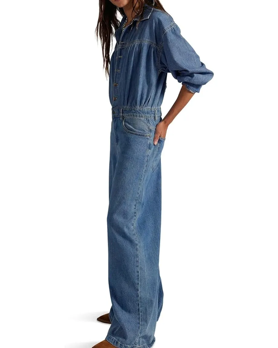 - Seize the slay styling Free People™ Carpe Diem One Piece. Designed with a head-turning optical illusion that fuses a soft chambray-style top with a rigid denim bottom, all in one easy pull-on piece. The loose fit flatters every move, while a cinched waistline defines your silhouette just right. Made with soft denim on top and authentic rigid texture below, it offers both comfort and edge. Front button-up closures, a classic collared neckline, and a five-pocket design bring timeless utility to this modern-day must-have.