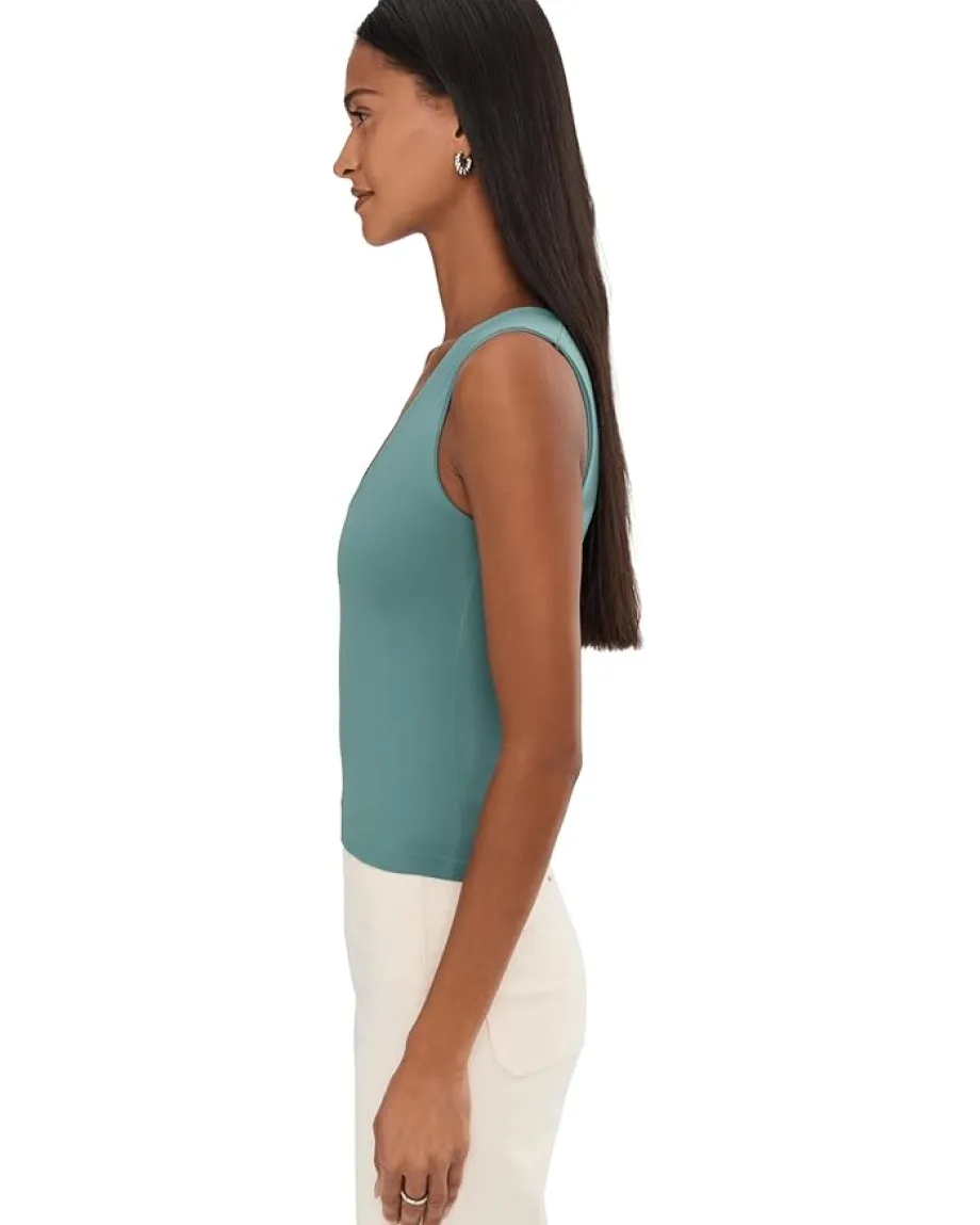 - Pair your everyday jeans with the Free People™ Clean Lines Muscle Cami for an effortless look. The pull-on style tank has a scoop neckline, sleeveless construction, wide shoulder straps, and a straight hemline. The classic fit top is seamless and supportive for a comfortable wearing experience.