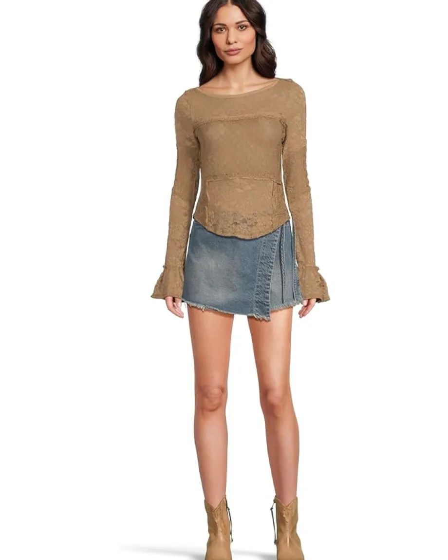 - Exude an elegant allure wherever you go wearing the Free People™ Lace Layering Long Sleeve Top. The pull-on style top features allover lace detailing, a boat neckline, long sleeves with flared cuffs, contrasting lace panels, and a straight hem.