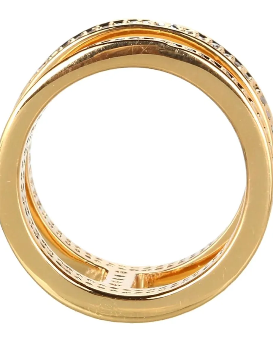 - Ring can be worn with the connecting bar showing for a more structured look or with the bar hidden to appear as two floating rings.