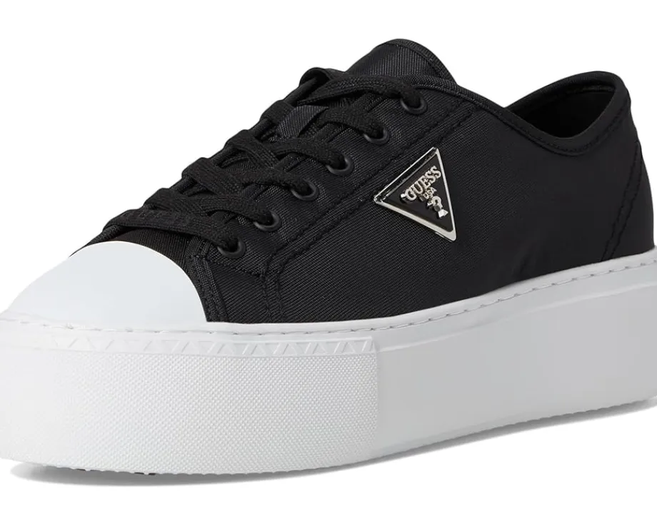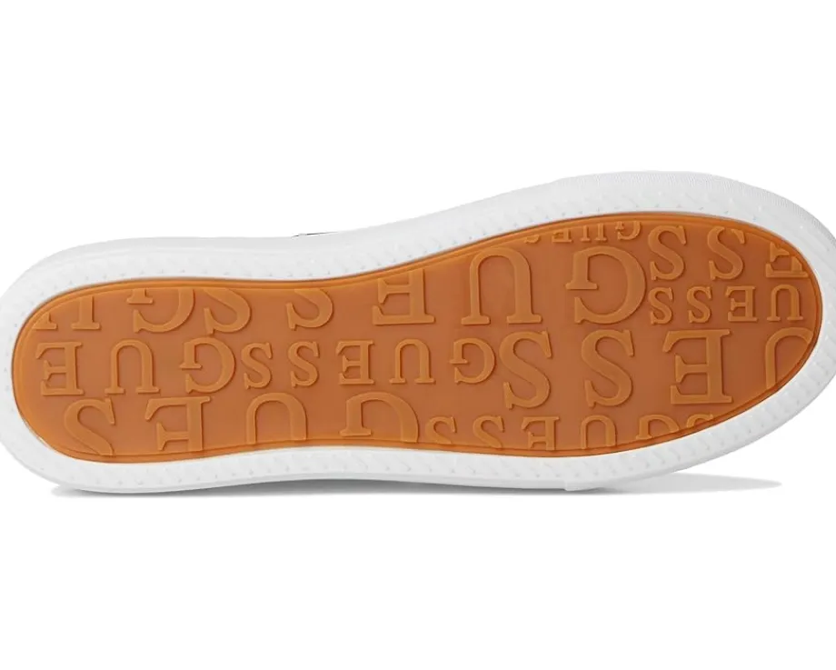 - The GUESS® Joezi shoes give a casual dress-up-or-down appeal. These platform sneakers are accented with a signature Guess triangle logo that is ready to wear with jeans or a dress. They are designed with a cushioned insole, synthetic sock lining, and synthetic rubber lining. The rubber upper features a lace-up closure for a secure fit. These lace-up sneakers are perfect to pair with different outfits and styles.