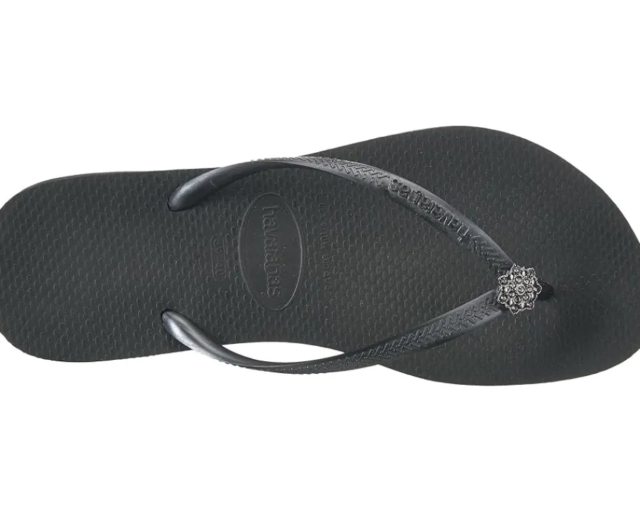 - Textured rubber upper with glittering jewel embellishment.