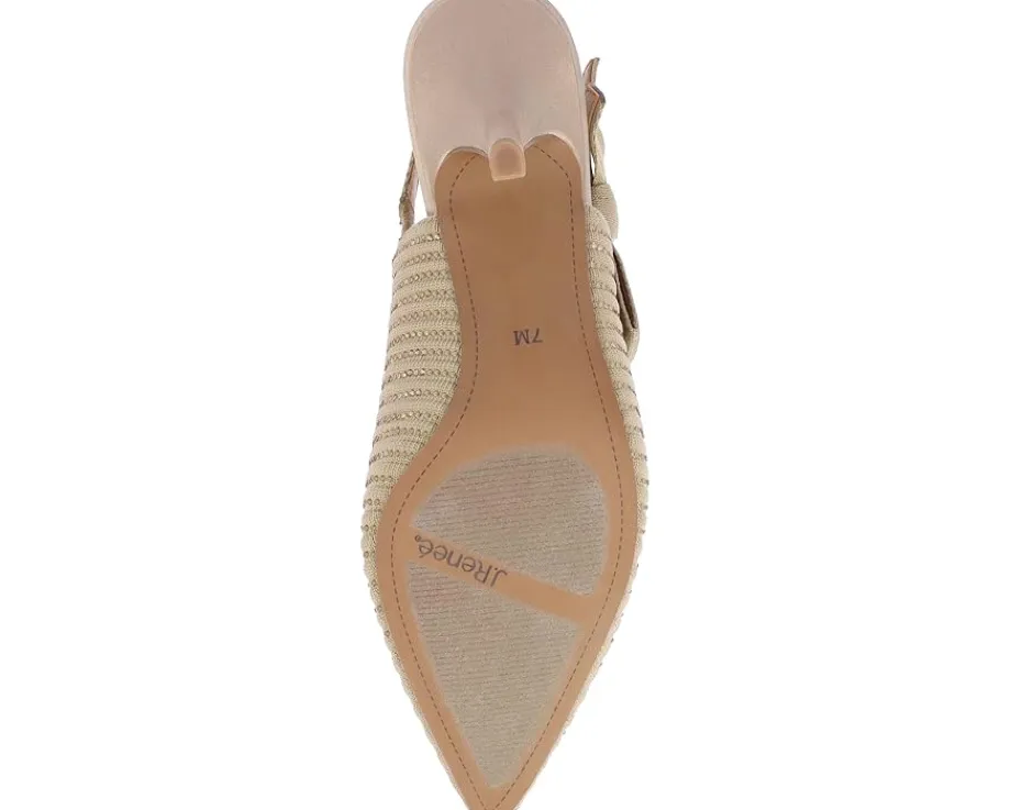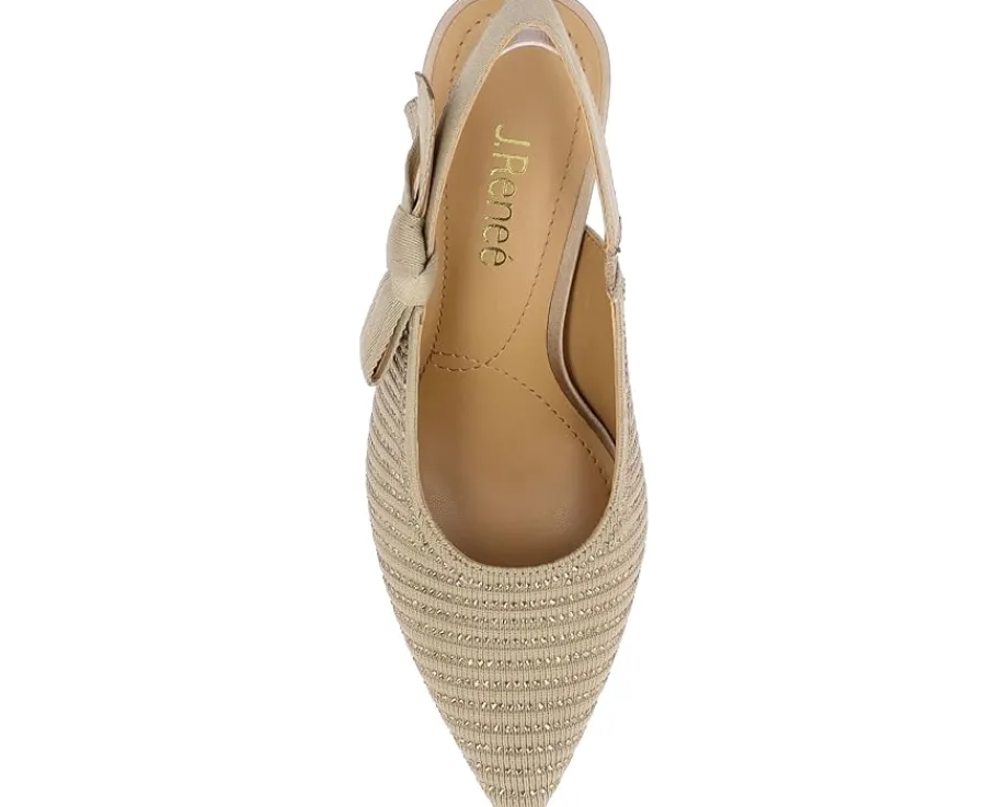 - Add a touch of class to your style statement wearing the J. Renee® Adilene pump. Made of polyurethane upper with embellished rhinestone, the pump features a memory foam latex insole and polyurethane lining. A elastic slingback with pointed toe and pull-on style ensures right fit. It has stiletto heel for year-round outings.