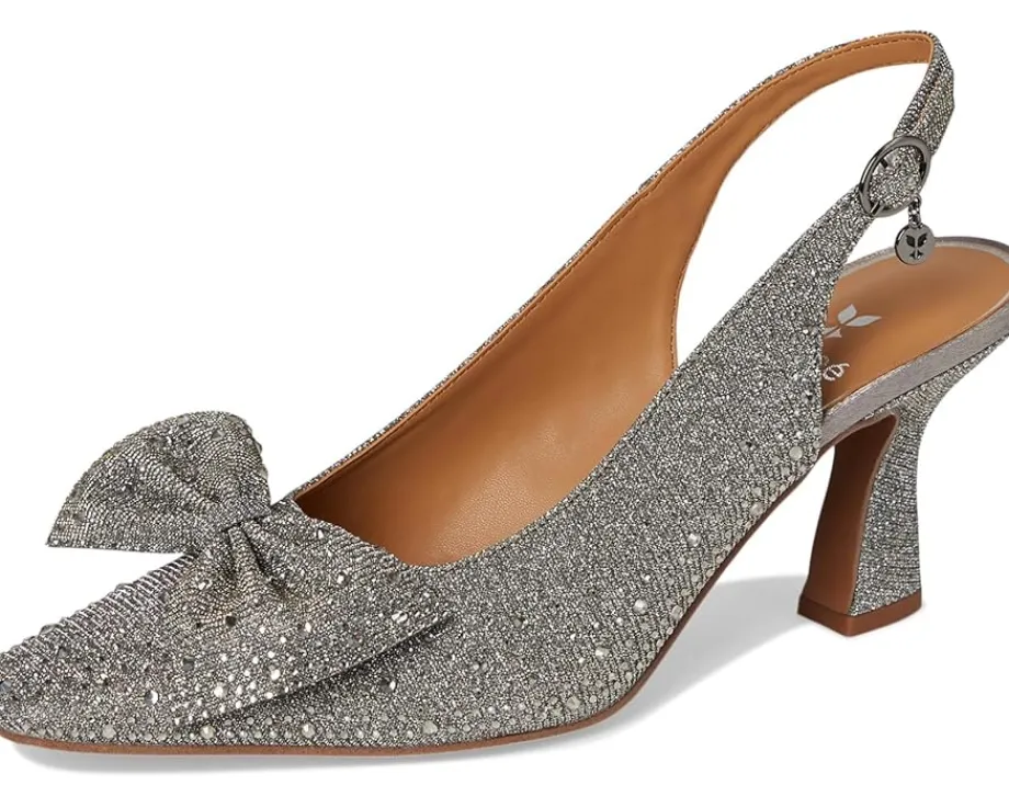 - This year-round women’s fabric/rhinestones square toe pump has a memory foam+latex insole and synthetic lining. This style also features a buckle closure on a 2.75 inch heel.