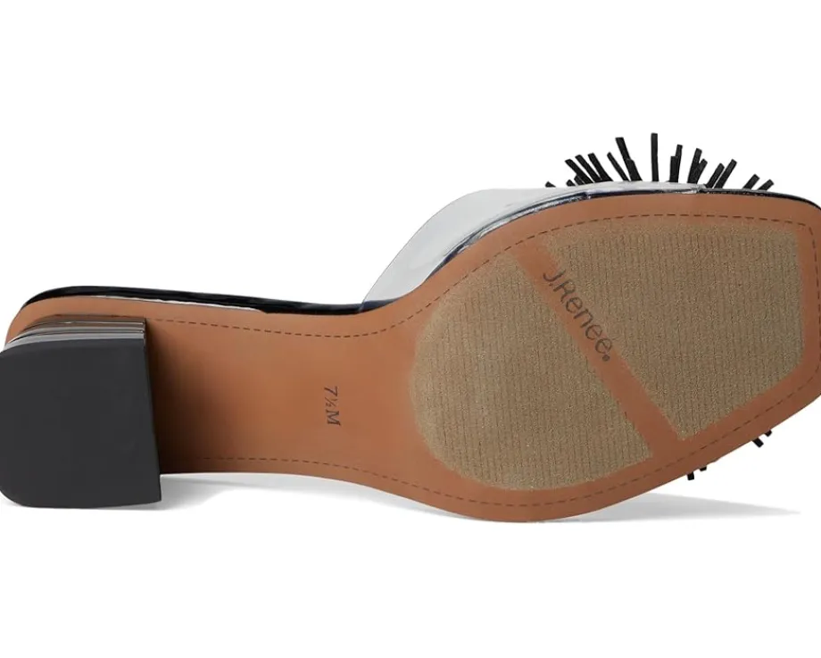 - The J. Renee® Ozara are slip-on style sandals that will take you to places feeling confident and chic. The open squared-toe heels are crafted with a polyurethane upper, synthetic lining, and a memory foam+latex insole. The embellishment on the upper and block heel detail adds style to your look.