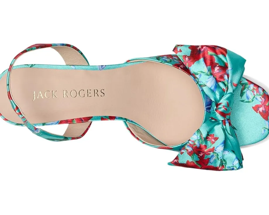 - A fresh twist on the iconic Jack Rogers design, the Jack Rogers® Eloise Bow Slingback sandals bring a touch of nature’s beauty to your step. Crafted from soft leather, these heeled sandals feature an intricate embroidered hydrangea design, adding a delicate floral touch to your warm-weather wardrobe. They are made of a leather insole and lining. The slingback strap provides added support. With their signature style and fresh, feminine flair, they are the perfect choice for effortless elegance and comfort all season long. These printed sandals are sure to be your go-to for stylish strolls.
