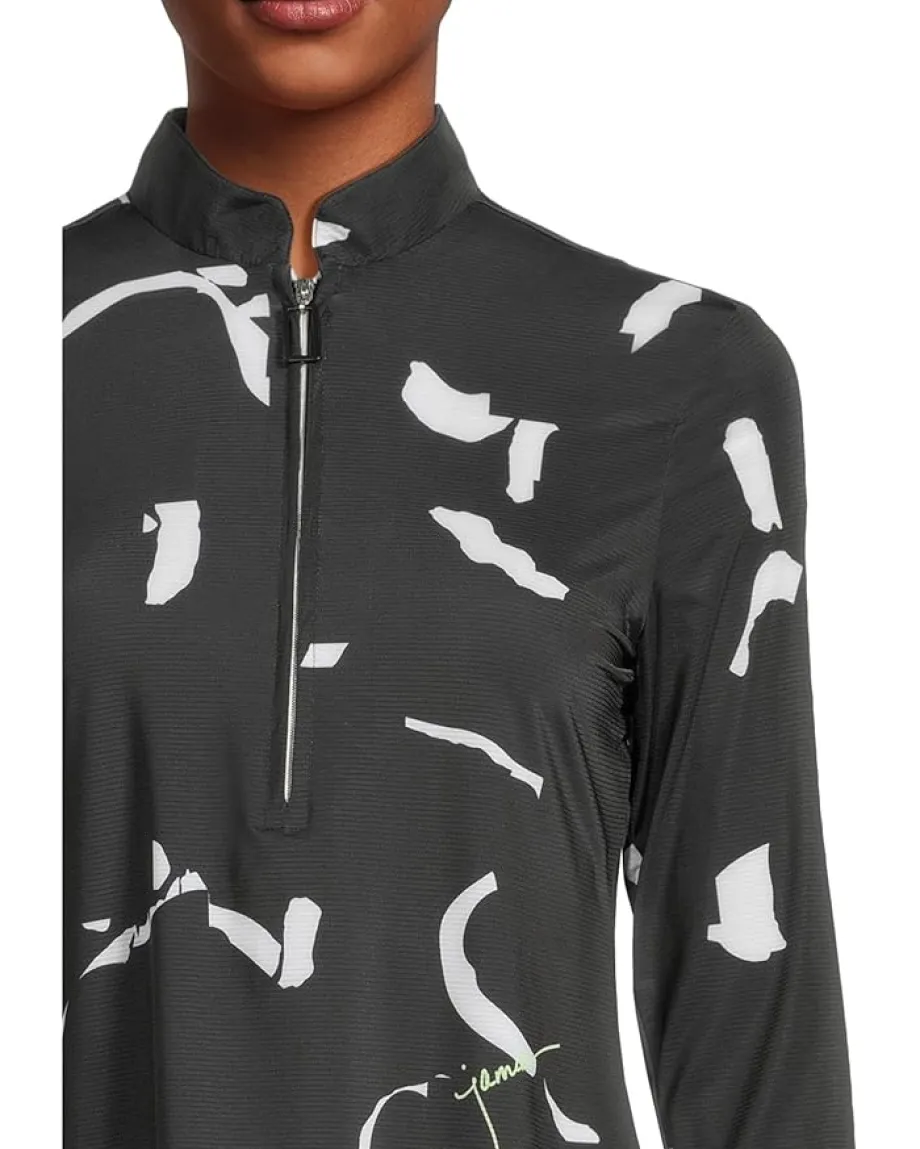 - The Jamie Sadock® Sunsense Andalouse Print Long Sleeve 1/4 Zip Sun Protection Top is a literal work of art designed, refined, and produced with the intention of being nothing like anything else on the market. Classic silhouettes infused with distinct details that set you a cut above others. Featuring mandarin collar neckline with zippered placket, long sleeves, and allover unique design.