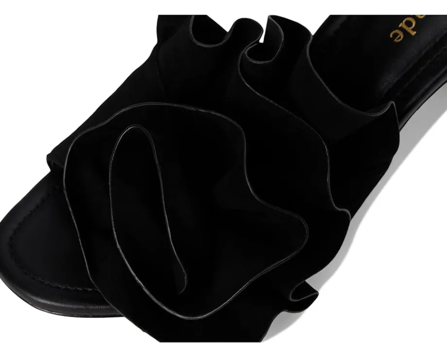 - Up your footwear game adding this Kate Spade New York® Flourish slip-on to your collection. It has leather upper with a 3D flower strap and slide on style. Lined with leather the slip on features open toe, leather insole and wedge platform.