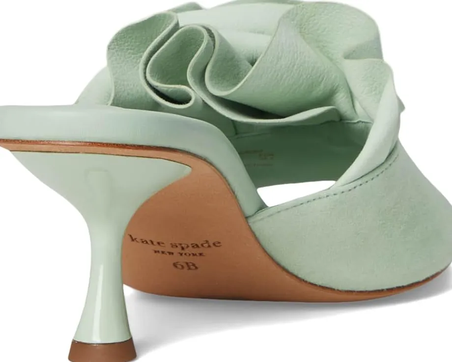 - Up your footwear game adding this Kate Spade New York® Flourish slip-on to your collection. It has leather upper with a 3D flower strap and slide on style. Lined with leather the slip on features open toe, leather insole and wedge platform.
