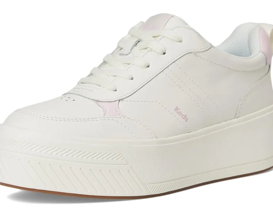 - The sky’s the limit with the ultrahigh, ultra-lightweight Skyler platform. With a 1.5-inch bottom, these lace-up sneakers offer leg-lengthening height without weighing you down thanks to incredibly lightweight ethylene vinyl acetate foam. Leather uppers with sporty perforation at the heel and toe and Keds’ signature chevron graphic on the side subtly elevate the on-trend style while keeping its minimalist-chic vibe that goes with everything from denim to dresses.
