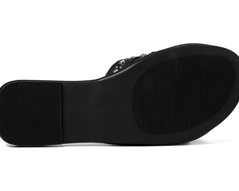 - Step out in trendsetting fashion wearing the Kenneth Cole New York® Jula Studs sandals. The chic woven cross band detail with studs adds a touch of edgy sophistication to these sandals, while the faux leather upper and lining provide durability and style. Slip into the padded leather insole for a comfortable and stylish look.