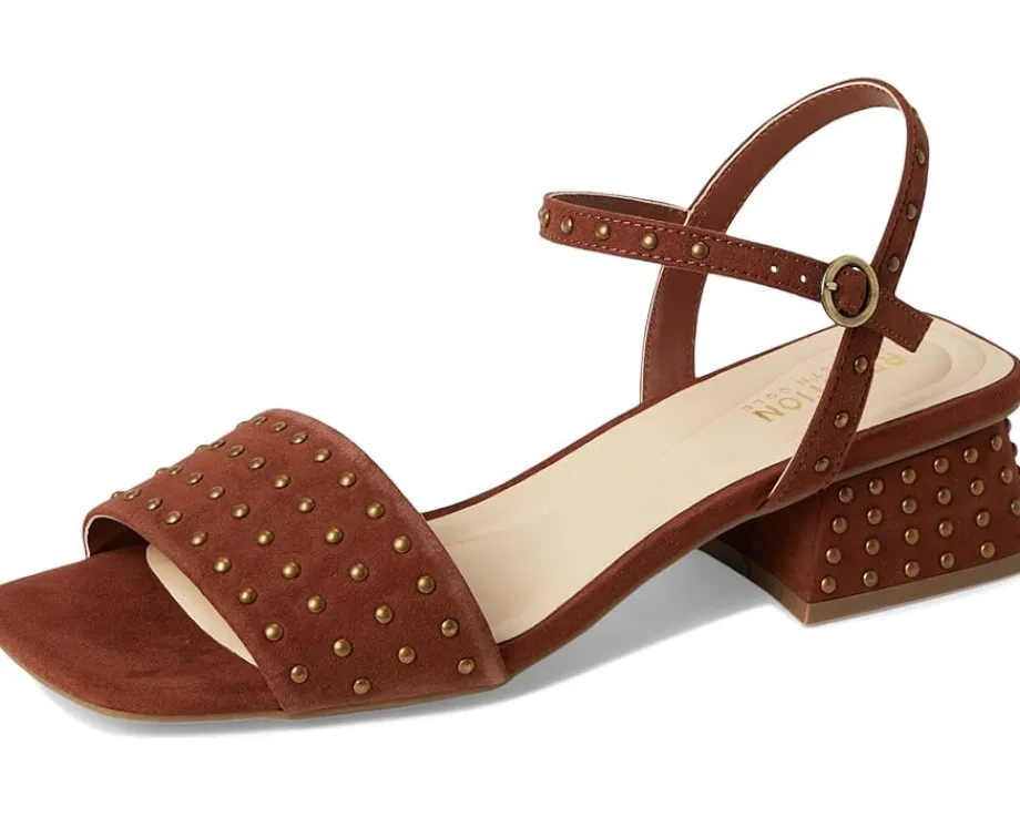 - Add a touch of glitz and glam to your warm-weather wardrobe choosing the Kenneth Cole Reaction® Buena Studs sandals! These stylish sandals feature microsuede upper, faux suede lining, and faux leather insole for a luxe feel. The allover stud detail adds a trendy touch, while the comfortable block heel and buckle entrance ensure a secure fit.