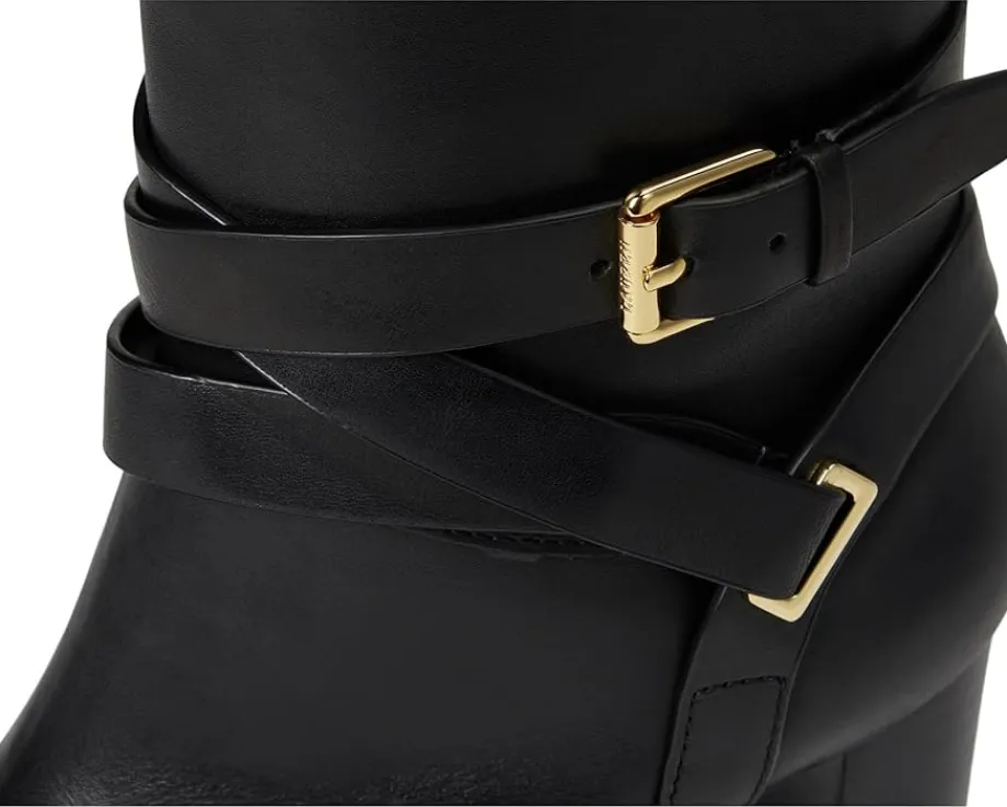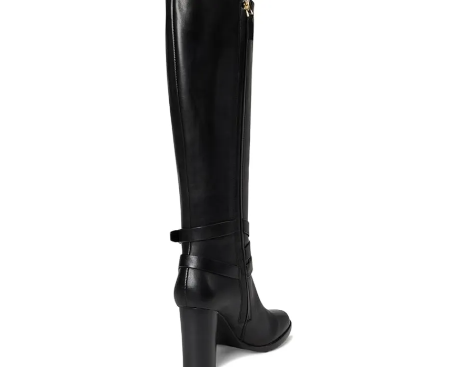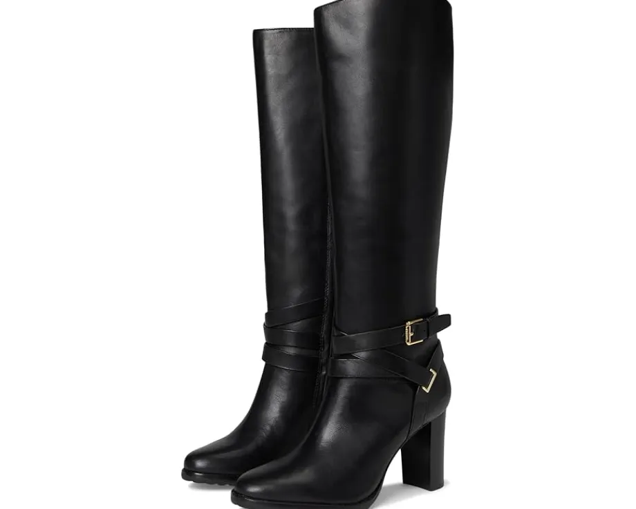 - Crafted from sumptuous burnished leather, the LAUREN Ralph Lauren® Collins Burnished Leather Tall Boots Heel are elevated by equestrian-inspired styling details, including a wraparound crisscross ankle strap. A stacked leather heel affords added sophistication while doubling as a practical design element, which ensures comfortable all-day wear.