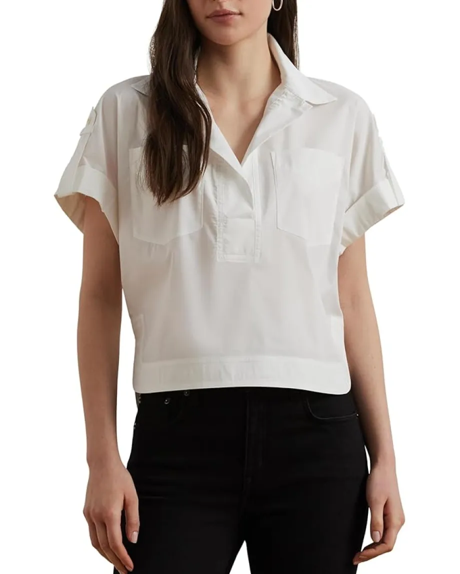 - Look bold and baggy wearing the Lauren Ralph Lauren® Cotton Blend Short Sleeve Camp Shirt. Designed with a roomy, collared neckline, relaxed silhouette and short roll-tab sleeves, this camp shirt is an effortless addition to your wardrobe. Detailed with patch pockets at the chest, it’s crafted with a lightweight stretch-cotton blend for a silky hand feel.