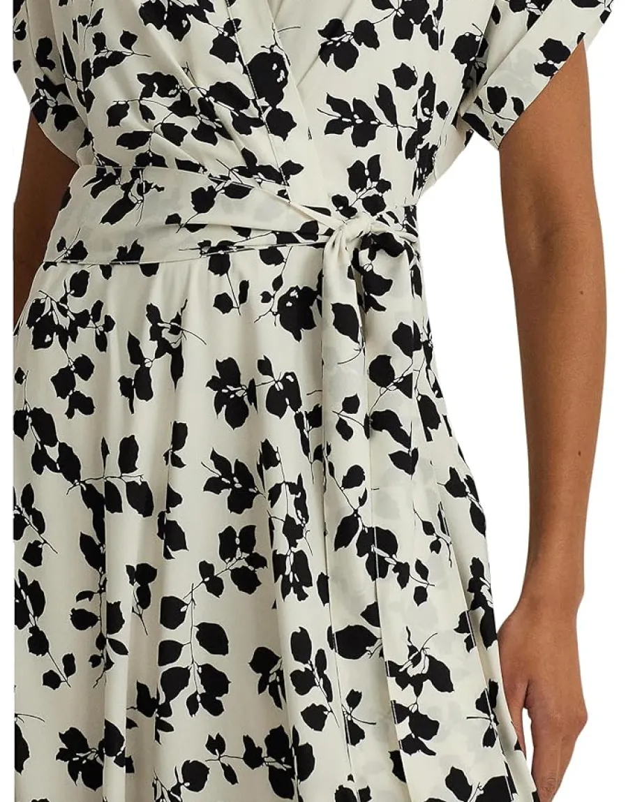 - Featuring a two-tone leaf print allover for a chic style, the LAUREN Ralph Lauren® Leaf-Print Belted Crepe Dress is an ideal choice for parties and events. This printed dress comes with a removable self-belt and threaded belt loops for a refined look. The short roll-tab sleeves and a surplice neckline offer added comfort. Fully lined, this A-line dress is perfect to flaunt your fashion and style.