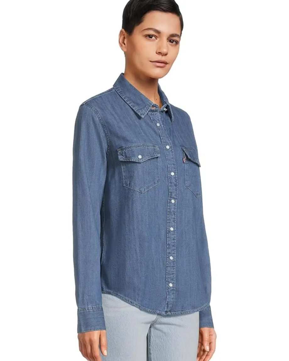 - Designed with the famed pointed pocket and yoke detailing, the hardworking Levi’s® Premium Iconic Western Shirt is here to stay and only gets better with age. The collared shirt features a full snap-button closure, long sleeves with buttoned cuffs, two snap-button flap pockets on the chest, and a curved shirttail hem.
