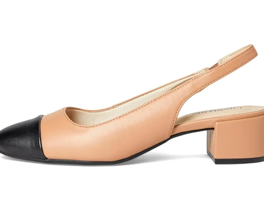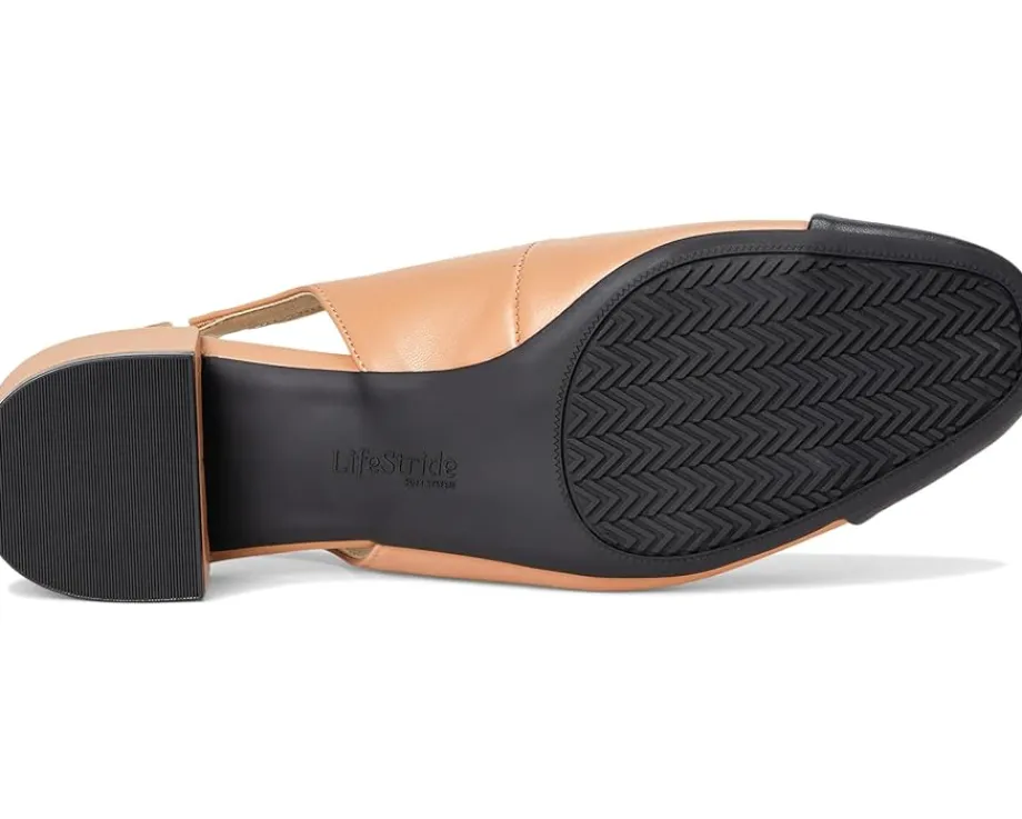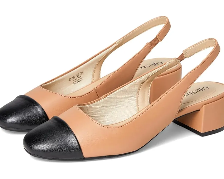 - A timeless silhouette, updated for today. This comfortable, LifeStride® Becoming low slingback heels with contrasting cap toe design will be a new favorite. Faux leather or fabric upper with contrast round cap toes and slingback strap with built-in stretch. The Soft System® Comfort package provides all-day support, flex, and cushioning.