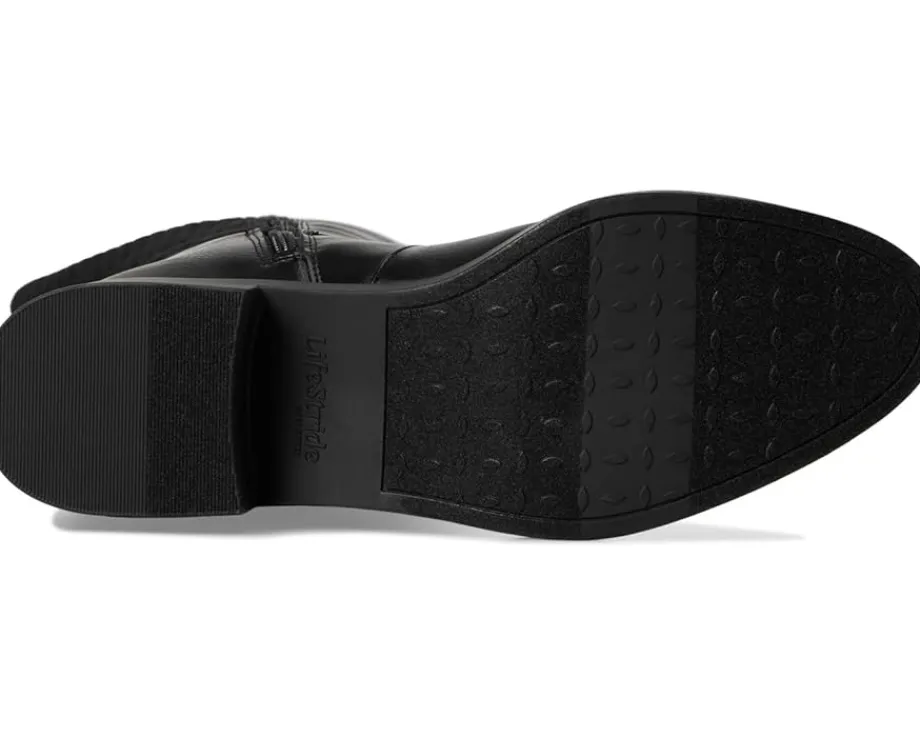 - Sleek and comfortable, the LifeStride® Brighton tall boots with modern design and built-in stretch are a go-to. Crafted with a faux leather upper, it features a rounded toe, zippered side closure, and a decorative ankle strap with metallic ring accent for a touch of edge. The stretch knit back panel ensures a flexible fit, while Soft System® comfort technology delivers all-day cushioning, support, and flexibility.