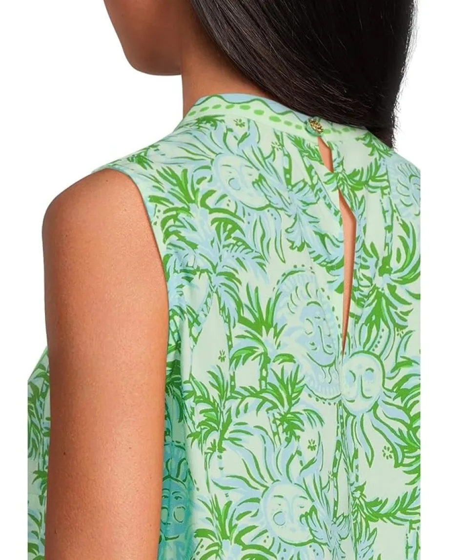 - Channel sunny vibes and statement style in the Lilly Pulitzer® Anya Top. Designed with a flattering high neck and a straight-fit silhouette, this sleeveless stunner brings a fresh, polished touch to warm-weather dressing. The vibrant floral print radiates bold femininity, while the keyhole detail at the back of the neck adds a subtle, flirty twist. Crafted for easy wear with a pull-over design, it’s perfect for brunch dates, beachside strolls, or dressing up denim.