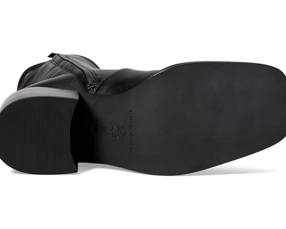 - Enrich your fall look with the luxurious appeal and elegant touch of the Loeffler Randall® Nolan Stretch Ankle Bootie with Block Heel. Designed in a polished, stretch leather upper with a breathable leather lining and a padded leather insole, the shoes offer incredible comfort throughout your day. They boast a modern square toe perfectly coupled with the sturdy block heel.