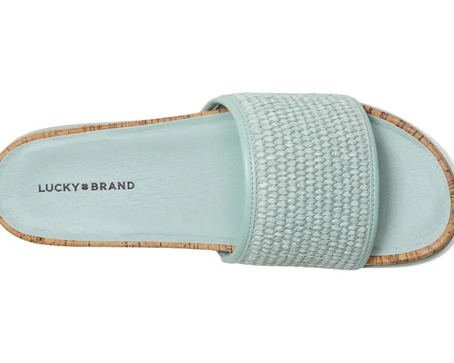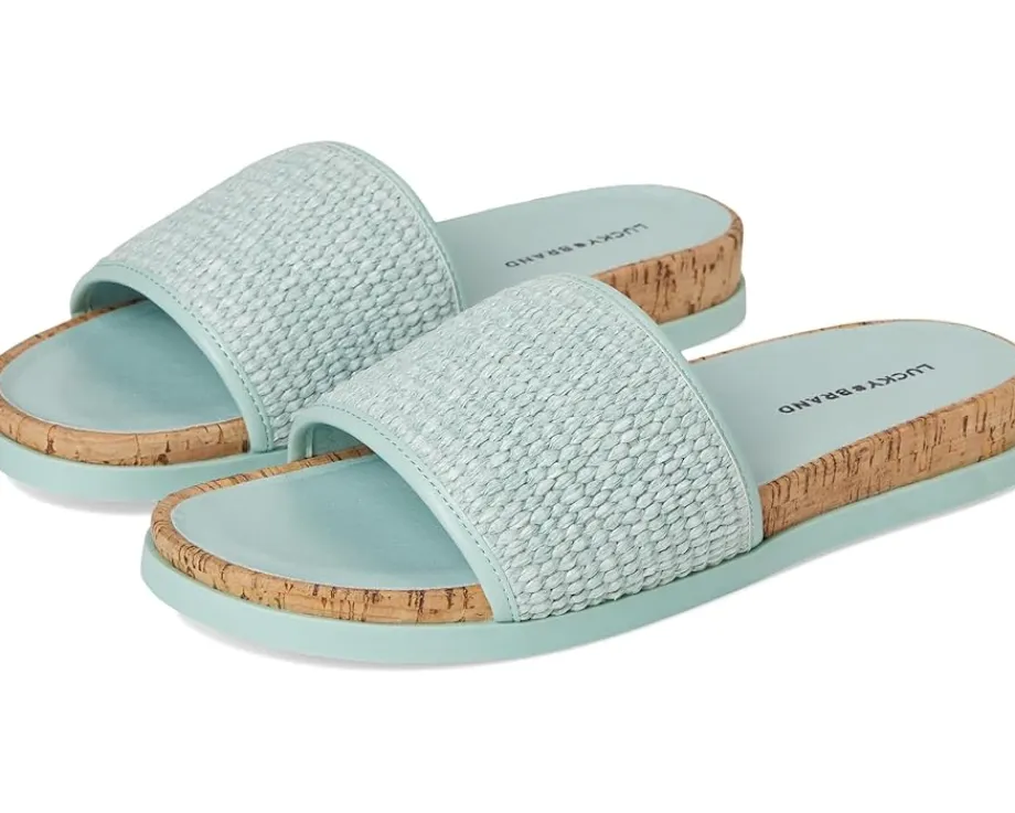 - Pool slides, beach slides, you name it slides! The Lucky Brand® Dylina Woven Band Sandals are bright and fun for all summer long. Easy to slip on and off, these slide sandals are made of a woven jute upper and cushioned rubber insole. Slip into effortless comfort and style with these slip-on sandals.