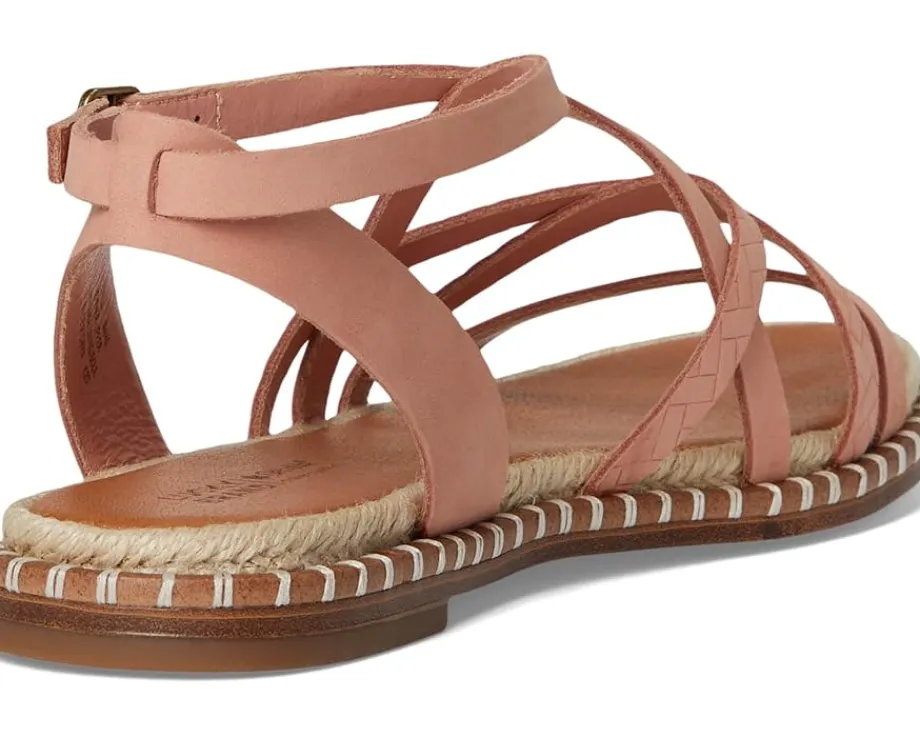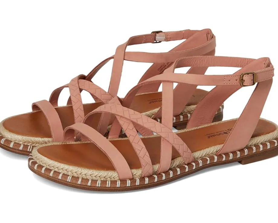 - Look good, and feel strong wearing the Lucky Brand® Kielly Cross Strap Flat Sandal. Crafted from leather upper, this pair of sandals features strappy upper, subtle rope detailing, open round toe, adjustable buckle closure, OrthoLite® footbed, and low stacked heel.