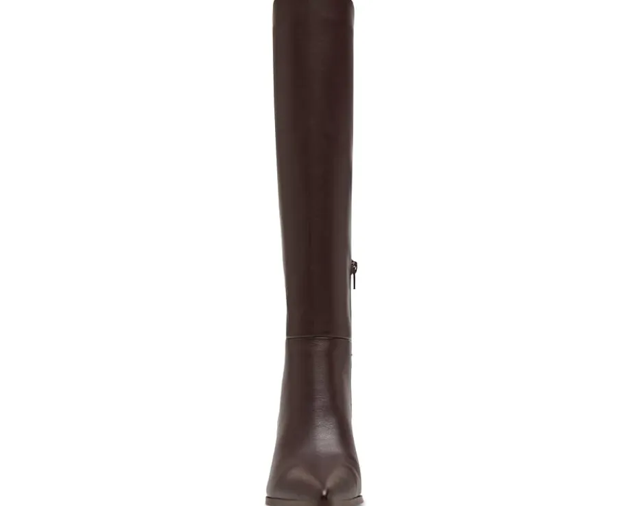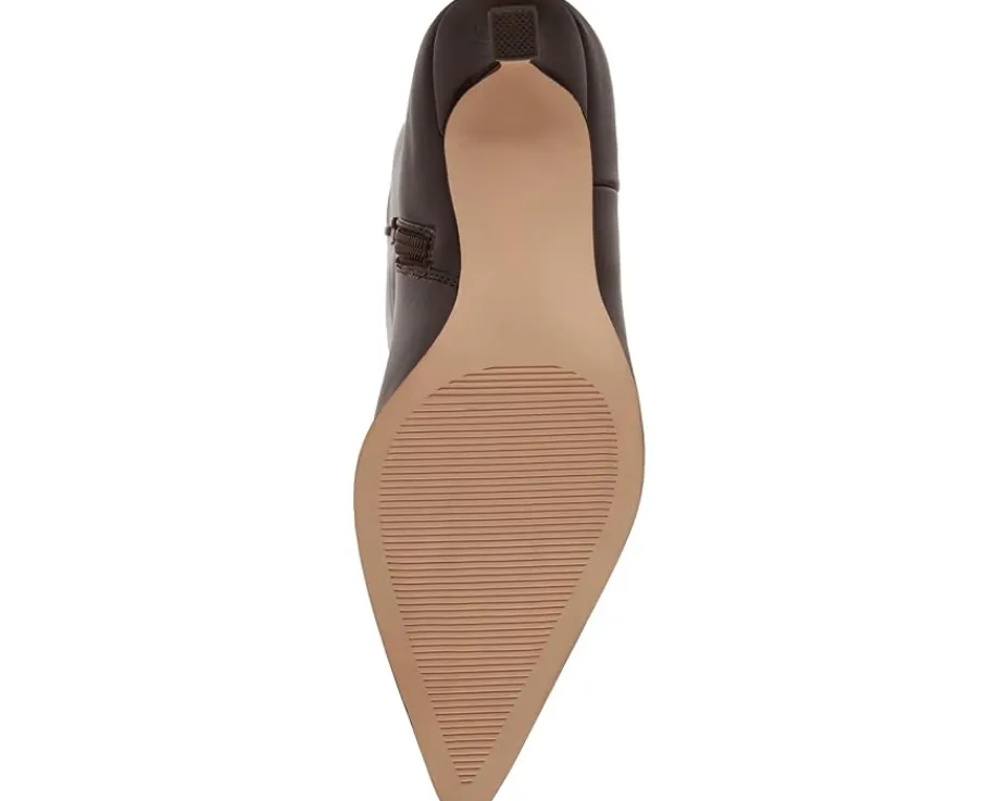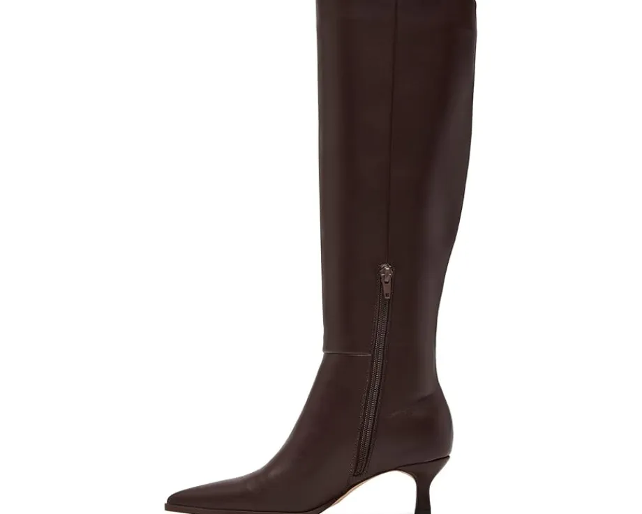 - The Madden Girl® Debutt features a pointy toe and kitten heel to balance a trend-savvy boot shaped in a knee-high silhouette for a timeless appeal. With a zippered side closure, the footwear has polyurethane upper construction, synthetic rubber lining and insole for added comfort.
