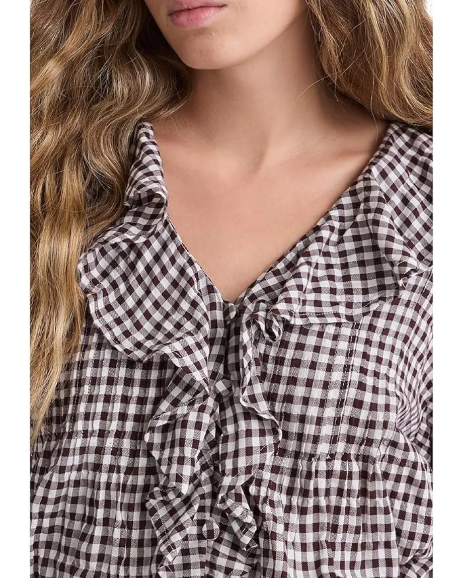 - The Madewell® Marciana Top captures modern femininity with a touch of timeless charm. Designed in a regular fit that flatters every frame, this piece exudes relaxed sophistication for any occasion. The graceful V-neckline framed with delicate ruffles adds a soft, romantic flair, while long sleeves with button cuffs create a polished, versatile look you can dress up or down with ease.