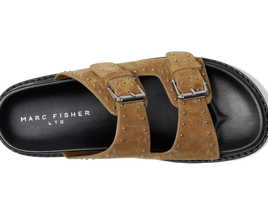 - Stay ahead of the trend wearing the Marc Fisher LTD™ Agusta sandals, where casual meets luxe. Crafted with a chic suede upper and cushioned EVA insole, these platform slip-ons redefine comfort and sophistication. The duo buckled straps add a touch of edgy flair, while the lightweight synthetic rubber outsole ensures all-day ease. Designed for effortless wear, the Agusta is your go-to for everything from sunny strolls to stylish soirées. With a sleek silhouette and premium materials, these sandals promise a statement-worthy look you’ll reach for on repeat.