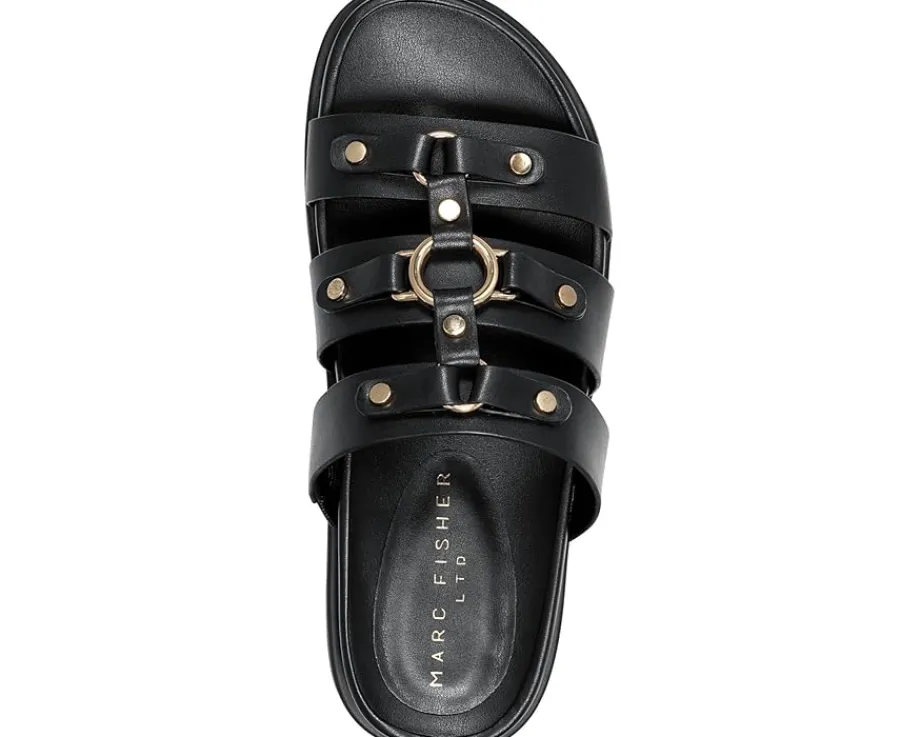 - Lightweight and comfortable, the Marc Fisher LTD™ Verity flats feature a leather upper with a strappy design that offers a stylish appeal. Perfect to pair with different outfits and styles, these slide sandals are crafted with a padded insole and polyurethane lining that makes them a comfortable footwear choice. These flat leather sandals are a must-have for your footwear collection.