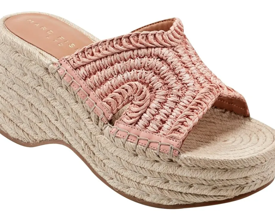 - Espadrille wedge marvelously elevates the stunning look of Marc Fisher LTD™ Zakki Sandals. The slip-on footwear features man-made upper construction with open round toe silhouette and sculpted platform detail.
