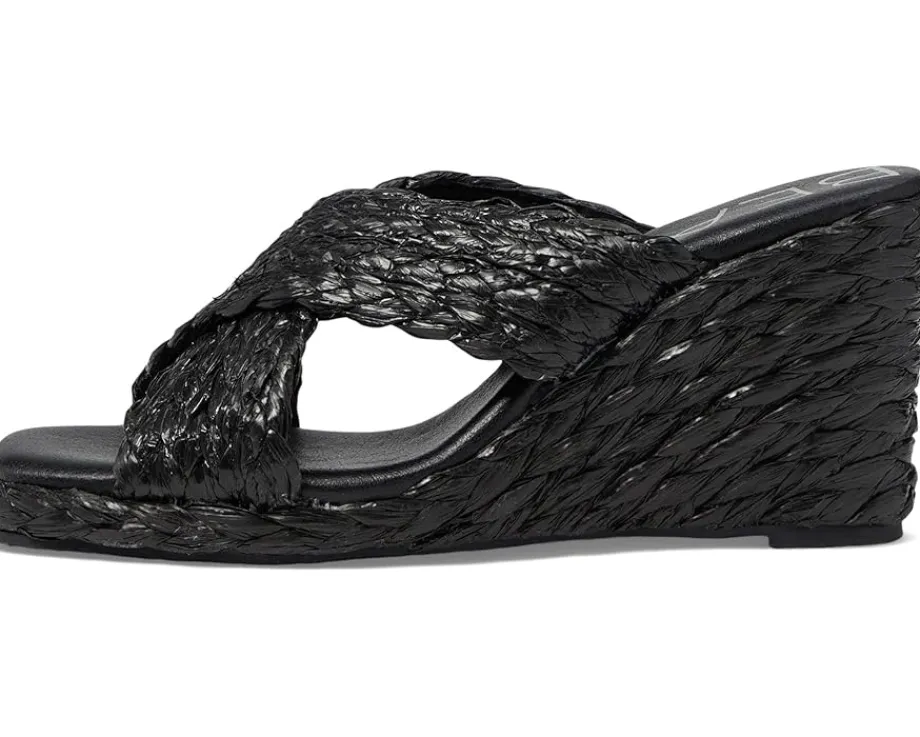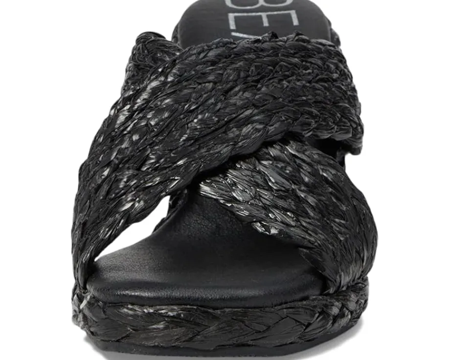 - Crossover strappy raffia upper.