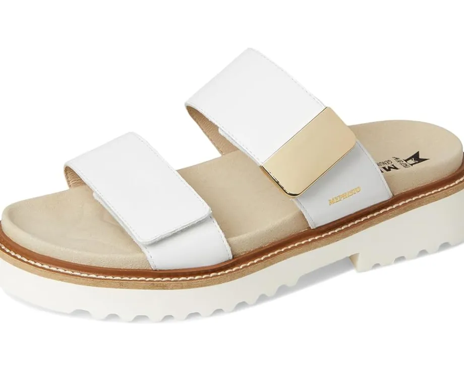 - The Mephisto® Vonny sandals can be adapted to suit all styles and tastes. Their Soft-Air midsole and SHOCK-ABSORBER integrated into the rubber outsole reduce shock to a minimum for a smooth, fatigue-free walk. They combine comfort with a perfect fit, thanks to their adjustable hook-and-loop straps, one of which is embellished with a metallic ornament for a touch of fantasy. These slip-on sandals are made of a full-grain leather upper for added durability. The faux leather insole and breathable leather lining make them comfortable to wear for long hours.