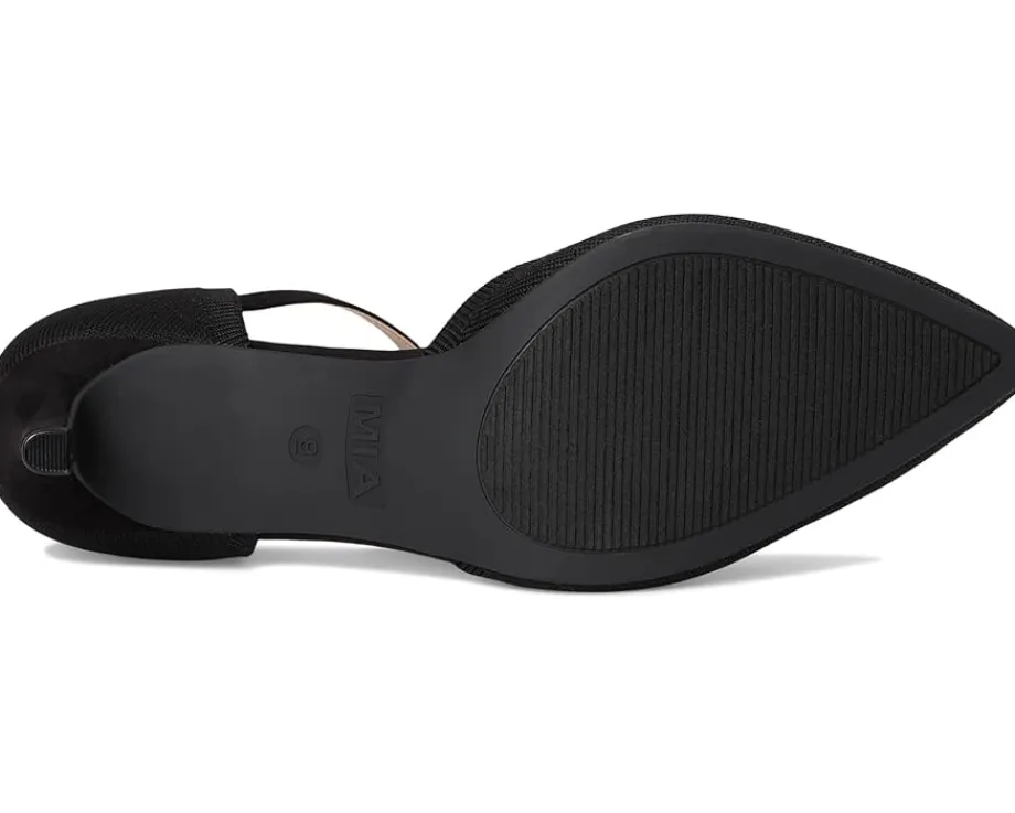 - A new spin on a classic: The MIA™ Bivi effortlessly blends classic elegance with a touch of modern flair. This must-have pump redefines minimalist chic with its smooth faux leather upper and lining, perfectly paired with a comfortable PU insole for all-day wear. The stiletto heel adds just the right lift, offering a confident stride whether at brunch, boardroom, or night out. Featuring a delicate buckle strap closure, the Bivi secures your step while showcasing a refined, breathable stretch-knit material that hugs your foot in effortless style. Its synthetic rubber outsole provides reliable traction, so you can move with poise and comfort. A classic pump with a twist, the Bivi proves that less really is more, bringing understated glamour to every outfit.