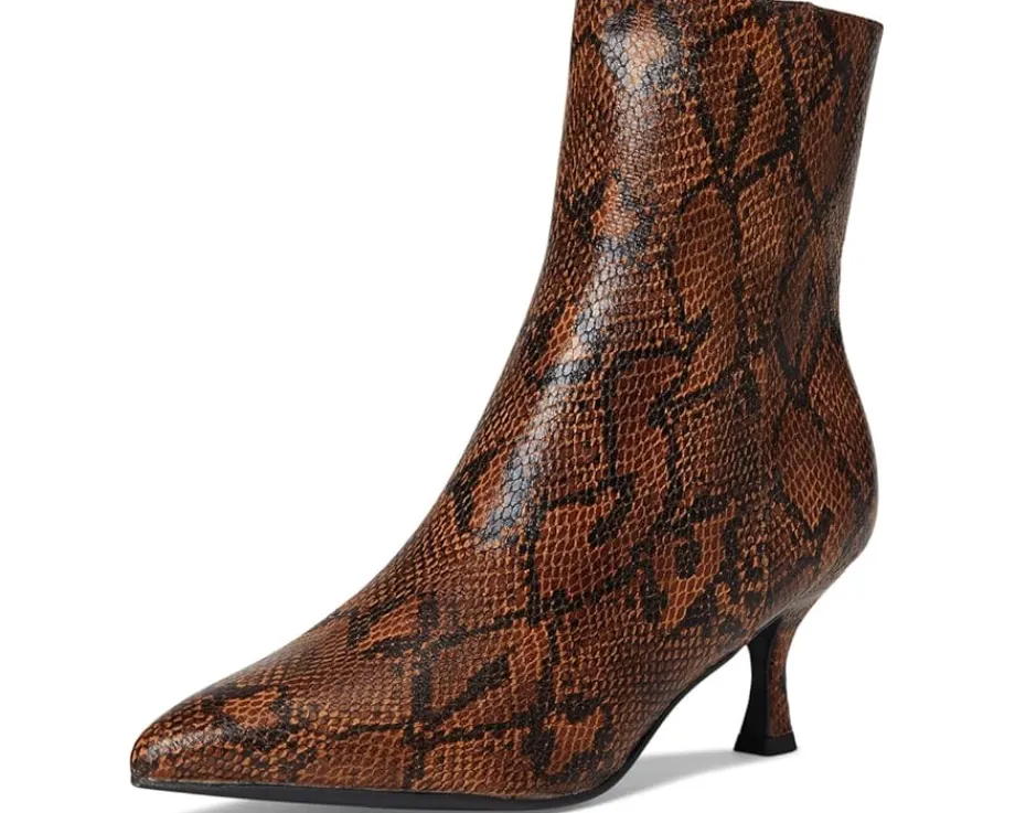 - Say hello to MIA™ Ediva-S, the snake print vegan leather bootie that’s anything but shy. With a fierce pointed toe design and a comfy kitten heel, she’s your go-to for adding a bold twist to any fall outfit. Statement-making is an understatement-Ediva brings the attitude, the style, and all the compliments. It has a faux leather upper, lining, and foam insole.