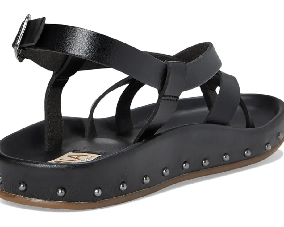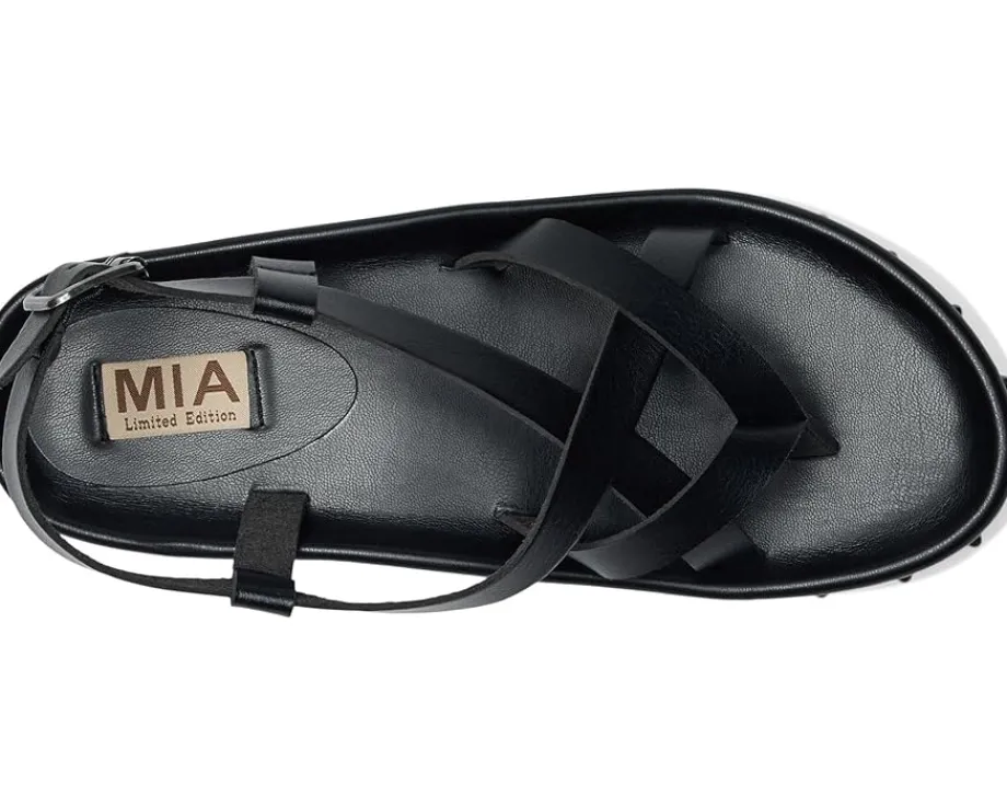- The MIA™ MLE-Zurie-S flat sandal boasts a sleek design with adjustable buckle closure at the slingback. With studded adornments, the footwear features an open almond toe silhouette.