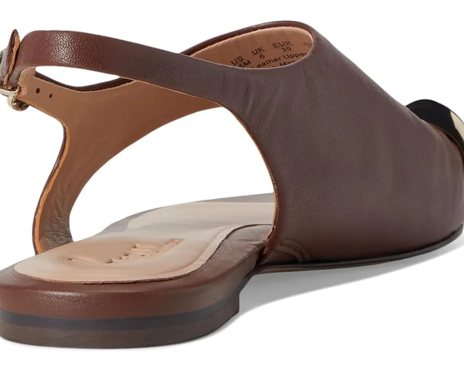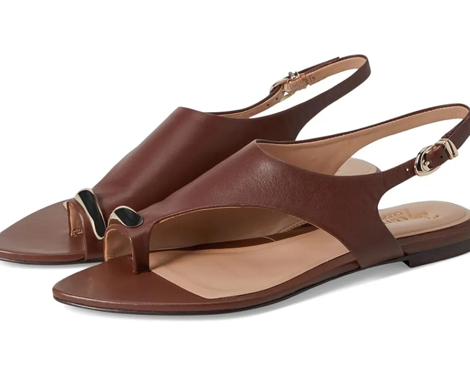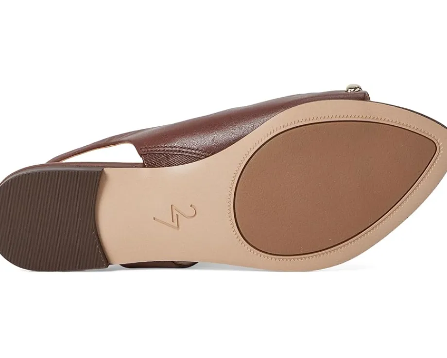 - From 27 Edit Naturalizer® found effortless elegance with a touch of shine. It’s the summer of sling backs. Slingback sandals with metallic touches and a toe loop. Premium leather upper responsibly sourced from leather working group certified tanneries, partially bio-based linings and an open toe. Adjustable buckle closure. Rezorb™ responsive cushioning for shock absorption + impact protection for sneaker-level comfort. Signature contour+ comfort technology for a true, all-day wear experience. Smooth lining and insole for natural comfort and breathability. Extra cushioning for added layer of unrivaled comfort. Proprietary rubber outsole design provides enhanced flexibility and shock absorption. Partially bio-based footbeds: crafted with soft and lightweight cushioning, built-in arch support, and a molded heel cup. Low heel, and insole crafted from partially recycled materials. Why you’ll love it: forever elegant silhouettes with all day wearability, designed to the contours of a woman’s foot.