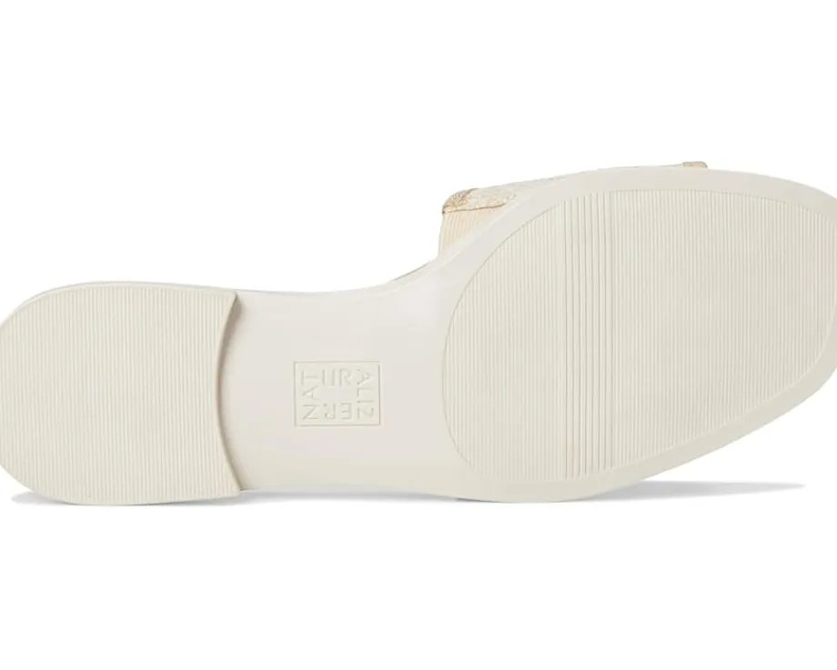 - The Naturalizer® Genevieve2 slides redefine everyday ease with a sleek woven synthetic or leather upper, effortlessly slipping on for a polished yet laid-back vibe. Designed with Contour+ Comfort technology, these slides deliver a premium fit, while the new Contour footbed provides an extra layer of plush padding, contoured shaping, and pressure distribution-minimizing fatigue so you can stay on your feet longer. The foam insole and PU lining add to the cozy feel, making every step a dream. Topped off with the iconic Naturalizer infinity logo, these slides are a statement in both fashion and function!