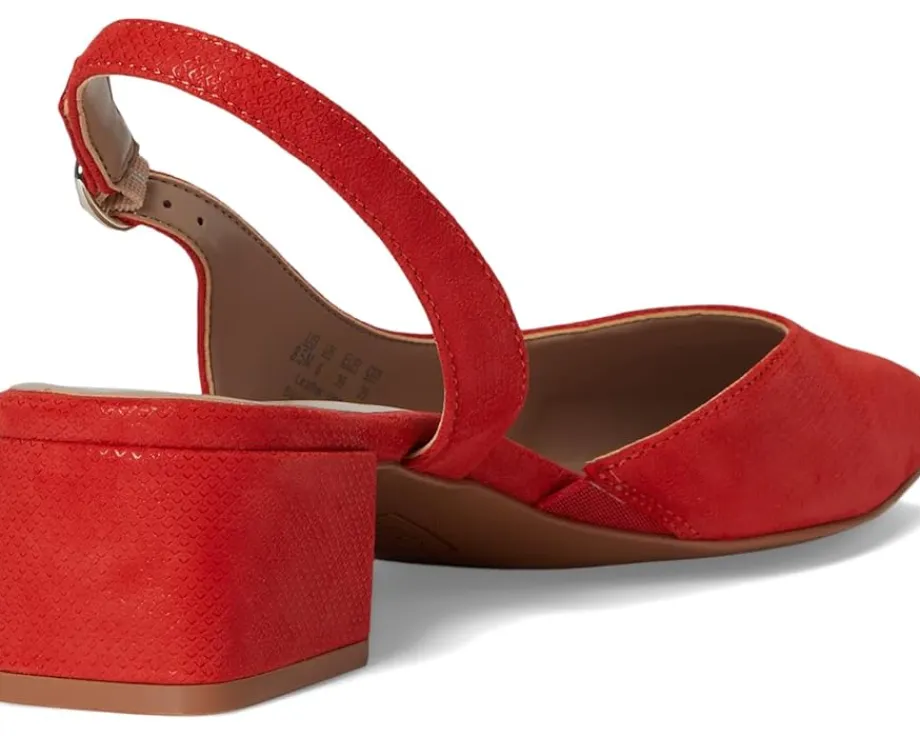 - Create a stylish look wearing the Naturalizer® Jayla sandals. Powered by REZORB™ for sneaker-level comfort, these are your new favorite slingback heels. Slipping into these low block heels always feels like a dream. Slingback dress shoes with D’Orsay side styling. It has a leather or metallic leather upper with a closed square toe design. Contour+ Comfort technology for a premium fit and all-day comfort experience.