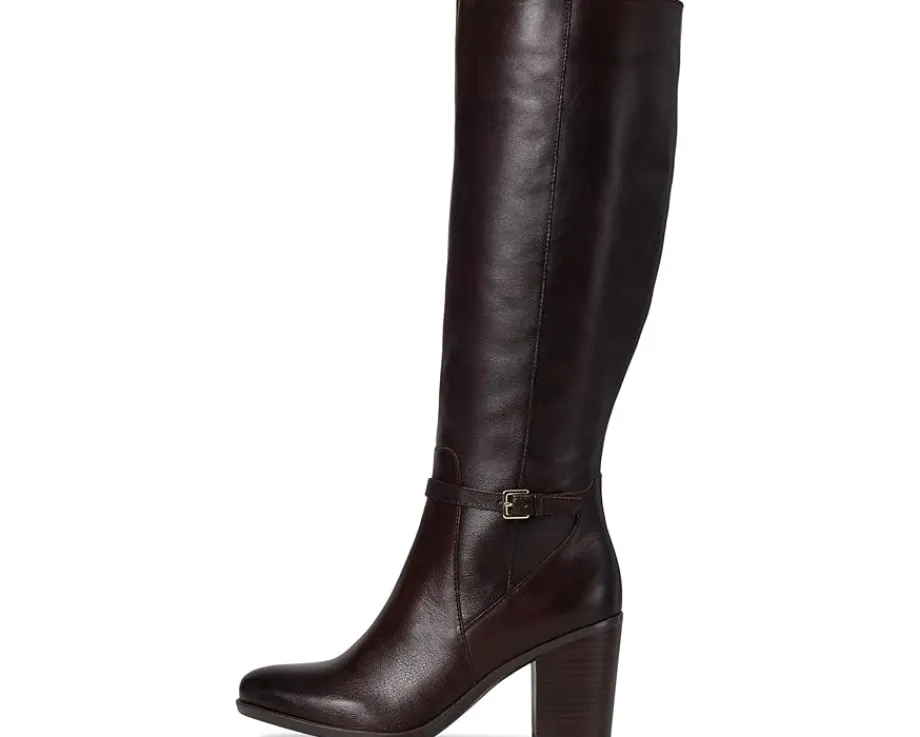 - Tailored for confidence: The Naturalizer® Kalina Narrow Calf is where polished sophistication meets your ideal, all-day comfort. This trendy knee-high boot is your go-to for day-to-night transitions, from the office to evening outings. Crafted with a smooth leather upper and soft fabric lining, it features a round toe and a flattering block heel that balances elegance with stability. The wraparound strap and buckle detail add a chic finishing touch, while the zippered side closure and goring panel ensure easy on-and-off with flexible movement. Designed with Contour+ Comfort technology, the foam insole delivers a premium fit and cushiony support for hours of wear, complemented by a non-slip synthetic rubber outsole for confident strides.