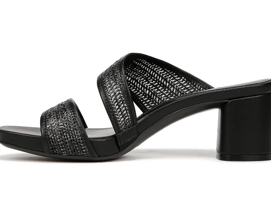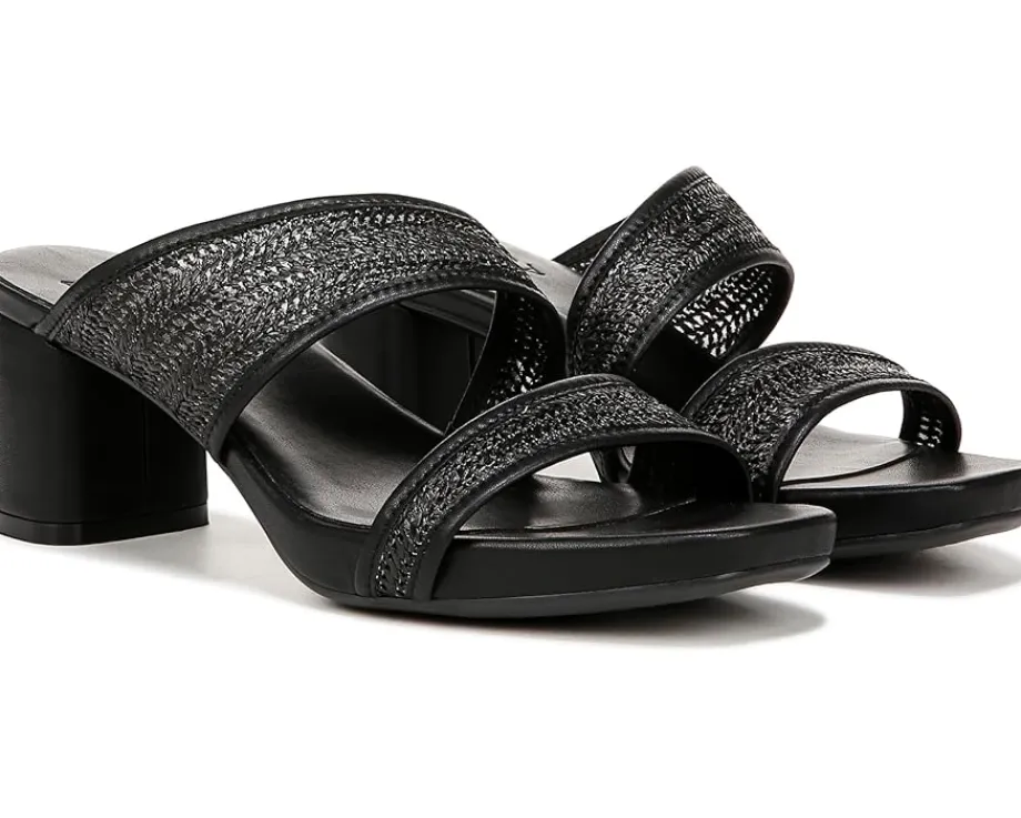 - Featuring Contour+ Comfort technology, the Naturalizer® Inez2 Slides offer all-day comfort and a perfect fit. The polyurethane straw upper features a two-strap design that offers durable support and a stylish appeal. These heeled sandals come with a polyurethane lining and foam insole. From matching your party dresses to formal outfits, these slide sandals work for different occasions.