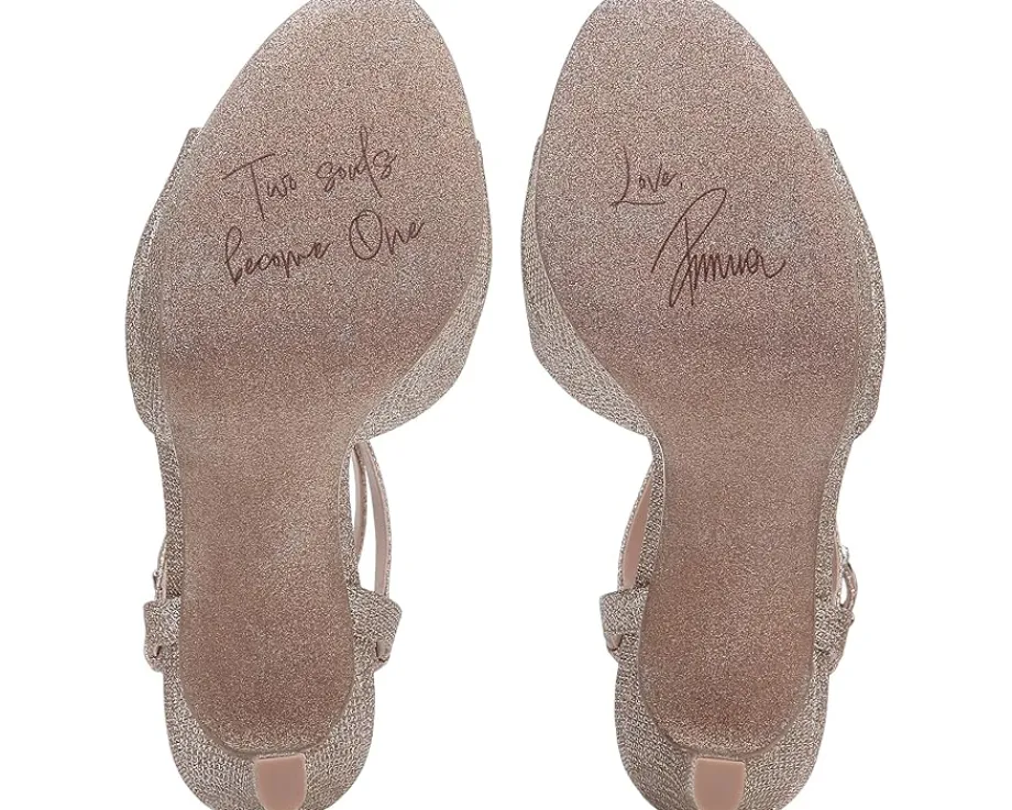 - Adjustable buckle closure on the ankle strap with heart charm embellishment.
