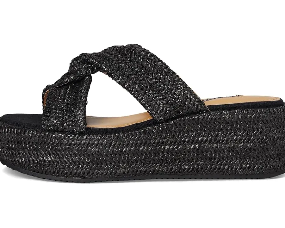 - Step out in style wearing the Nine West® Cerry platform sandals. The slip-on footwear features woven detailing and high wedge heels.
