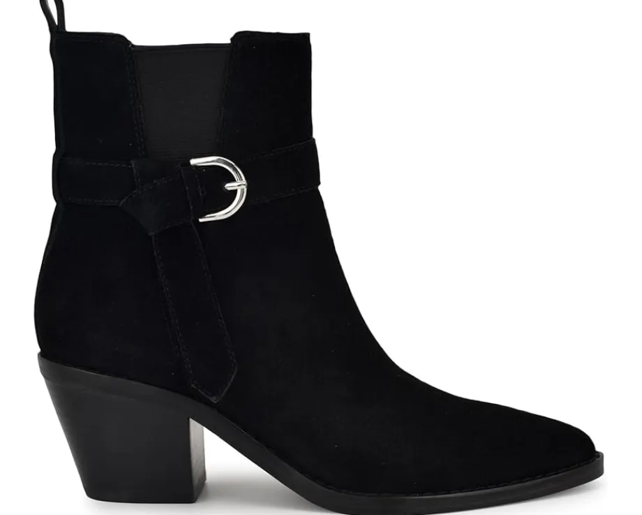 - Step up your style game donning Nine West® Lemone! These dress booties boast a chic suede upper and a stylish pointy toe, ensuring you turn heads wherever you go. The PU lining and synthetic rubber outsole offer comfort and durability, while the zippered side closure and stretchy gores provide a secure fit. Ankle-high with a versatile block heel, they seamlessly transition from day to night. Since 1978, Nine West has empowered women to take on the world in style.