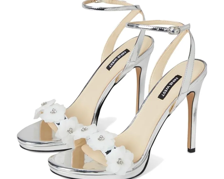 - Fall in love with the Nine West® Lovely dress sandals. It features a sky-high stiletto heel, adjustable ankle strap, open almond toe, and flower detailing on the upper. This sandal is anything but boring! Founded in 1978, Nine West empowers women to take on the world in style, from day to night.