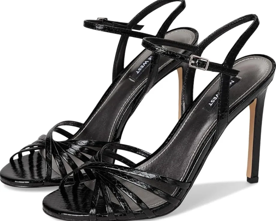 - Upgrade your wardrobe by adding to it the uber-stylish Nine West® Meripen Dress Sandals. Featuring a strappy design, high stiletto heel, and an adjustable ankle strap with buckle closure, this sandal is sure to turn heads! It is skillfully crafted with a man-made upper, man-made lining, and a cushioned insole.