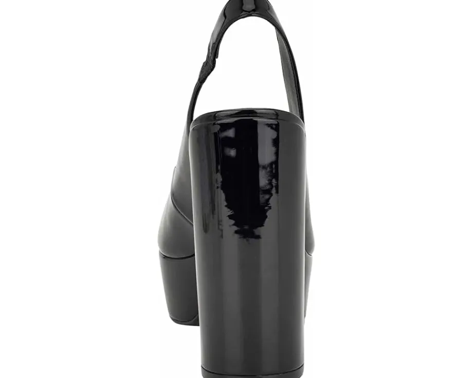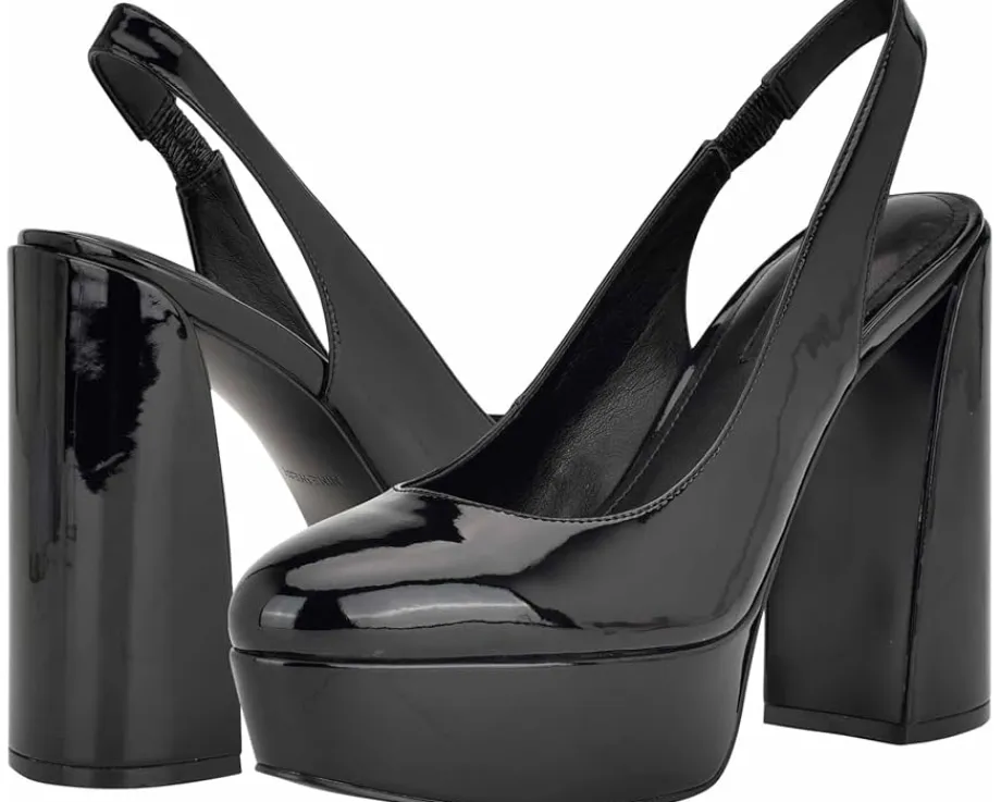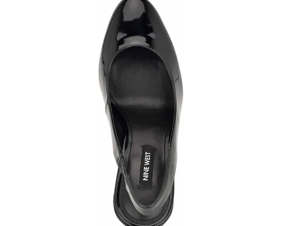 - Walk confidently wearing the high class Nine West® Trins. Crafted from leather upper, this pair of pumps features almond toe design, slip-on style with slingback strap, and block heel for a polished look.
