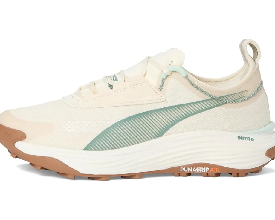 - Sporty and stylish, the PUMA® Voyage Nitro 3 Trail Running Shoes are a must-have for sports enthusiasts. Crafted with the advanced NITRO™ technology, these shoes offer superior responsiveness and cushioning in a lightweight package that feels like you’re running on clouds. The low-top sneakers are designed with an ethylene vinyl acetate upper, polyester lining, and ethylene vinyl acetate insole. Plus, with the heel spoiler, you not only get a sleek look but you’ll also benefit from enhanced stability for confident strides. The lace-up closure is designed for a secure fit and the ankle pull tab allows donning & doffing.