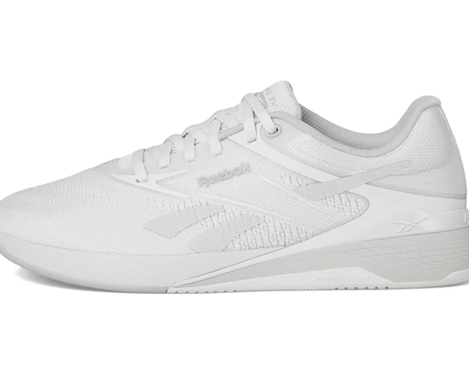 - Get ready to crush your fitness goals and move with confidence – the Nano X5 by Reebok® is your perfect workout partner! Engineered for versatility, these athletic shoes for men and women are built to jump, climb, and conquer any workout with unwavering confidence. Featuring a premium FLEXWEAVE polyester upper, they offer a 360-degree locked-in fit for superior comfort and stability, while the decoupled METASPLIT rubber outsole enhances flexibility and runnability. Designed for both performance and style, the Lift and Run Chassis system optimizes agility, speed, and endurance. With responsive cushioning, these shoes deliver the lightweight feel of running shoes while maintaining the stability of training shoes.